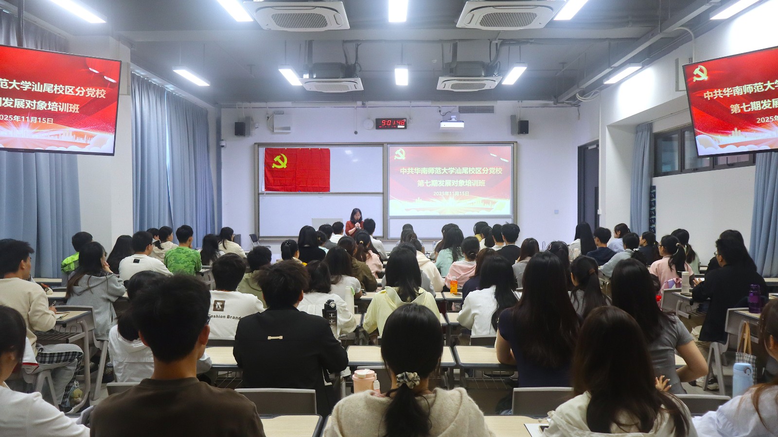 为深入学习贯彻习近平新时代中国特色社会主义思想和党的二十大精神,切实提升党员发展工作质量,汕尾校区分党校于11月15日至16日举办2025年下半年发展对象培训班,73名师生发展对象参加培训。开班仪式由汕尾校区分党校工作秘书、行知书院辅导员林慧婷主持。