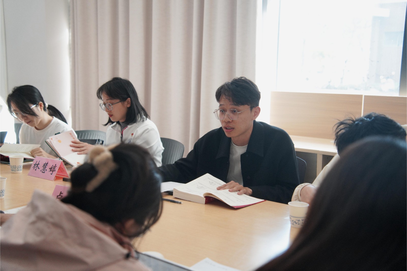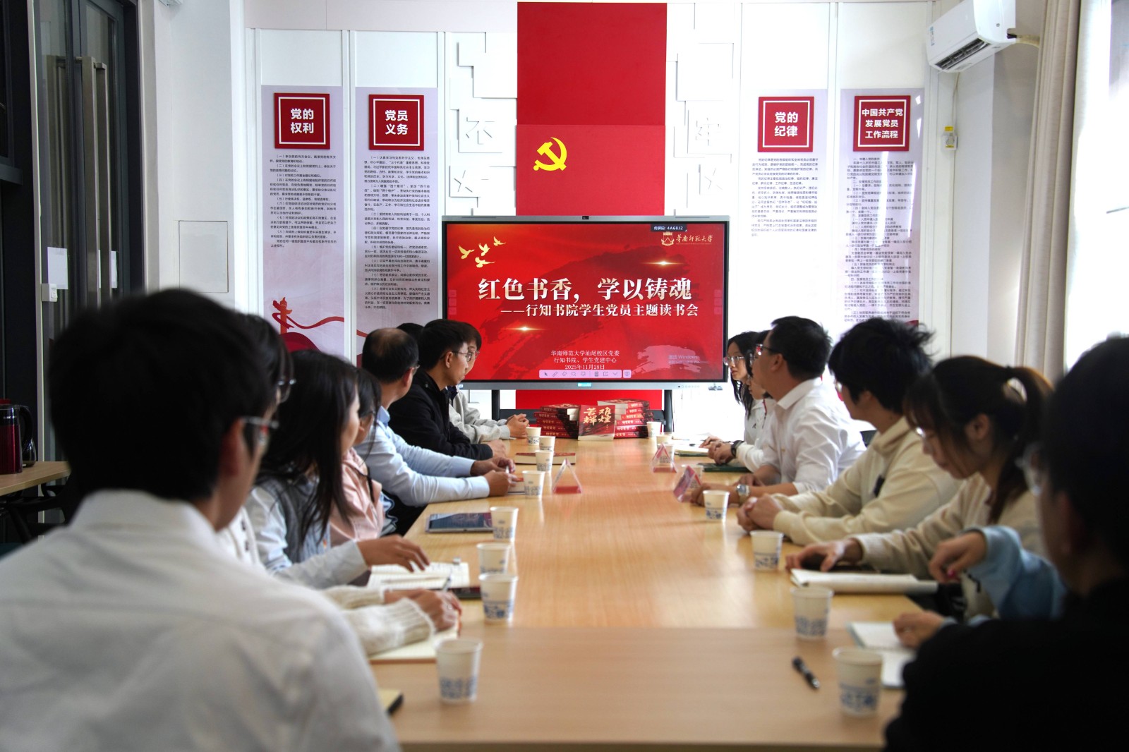 为传承红色基因、筑牢信仰之基,汕尾校区党建中心于11月28日举办了“红色书香,学以铸魂”主题读书会活动。活动特邀汕尾市直机关工委党建督查室主任卢元沛担任导读嘉宾,与校区学生党员代表和发展对象代表共读《苦难辉煌》,在沉浸式阅读中回望峥嵘岁月,于深度交流中凝聚奋进共识。