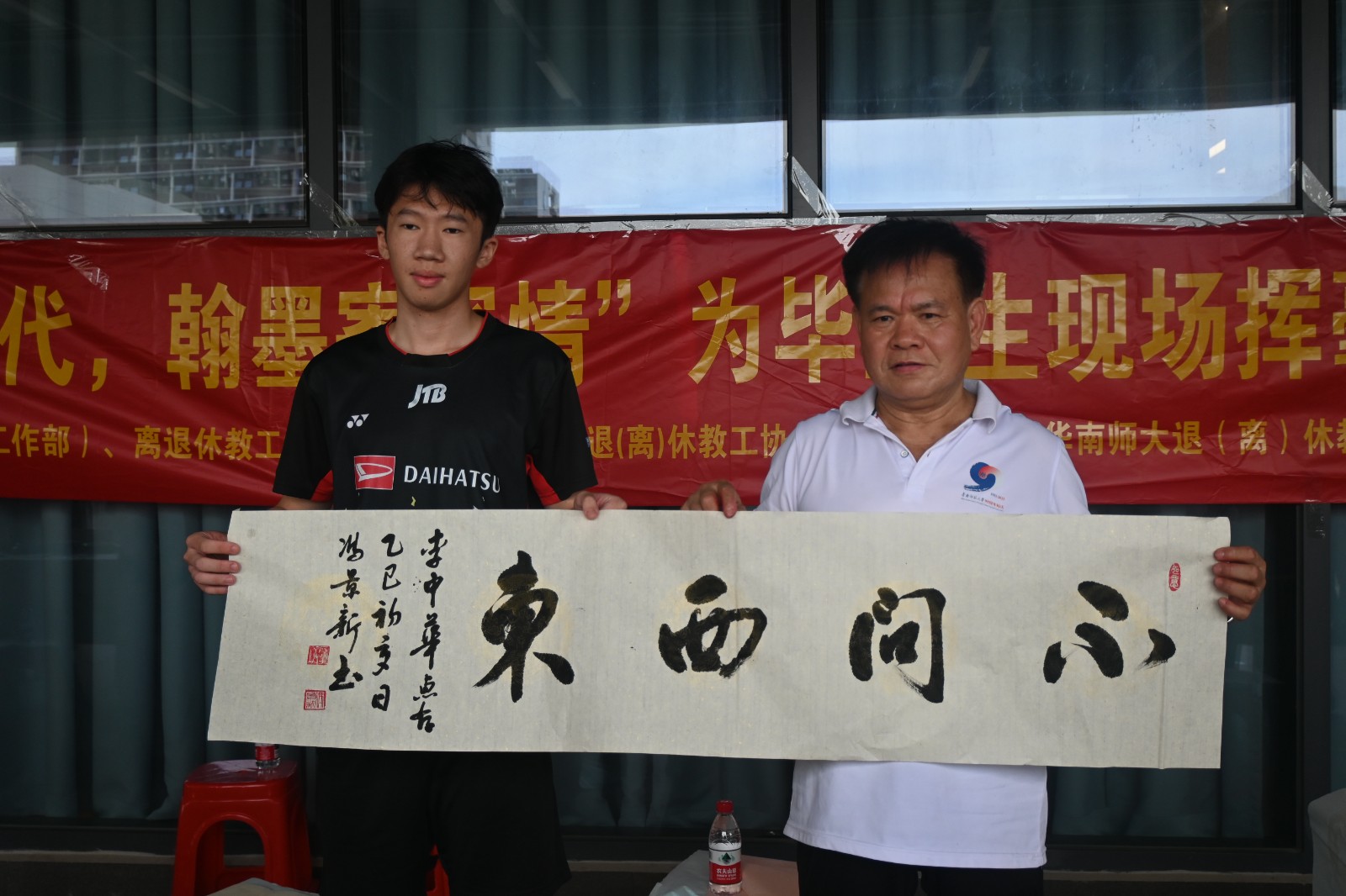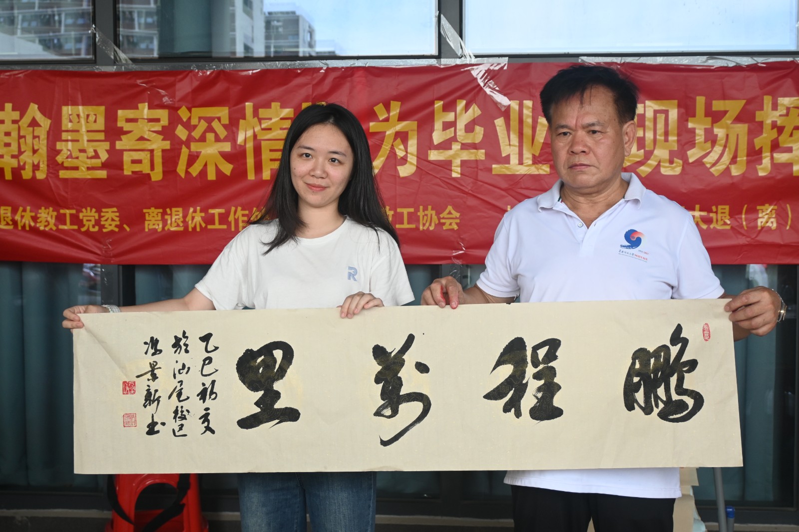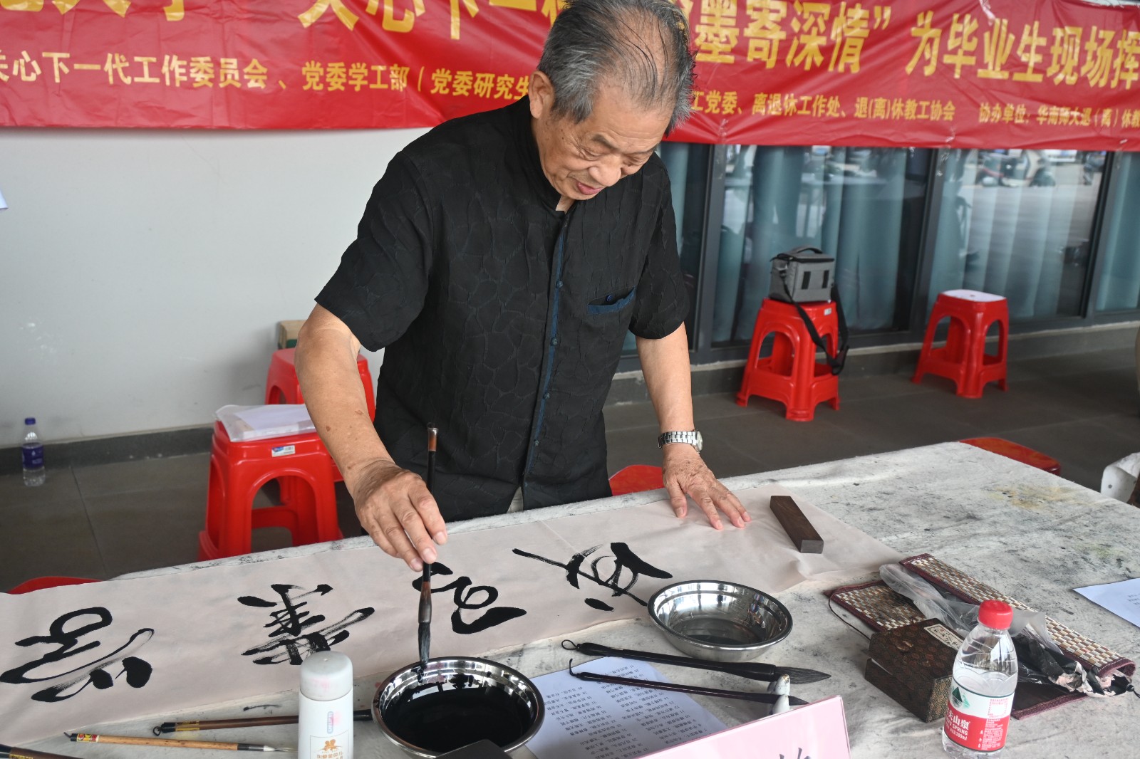 近日,由华南师范大学关心下一代工作委员会、党委学生工作部(党委研究生工作部)、离退休教工党委、离退协工作处、退(离)休教工协会联合主办的“关心下一代,翰墨寄深情”为毕业生现场挥毫赠送励志书画活动,在华南师范大学汕尾校区成功举行。本次活动由汕尾校区行知书院和校退(离)休教工书画研究院协办。